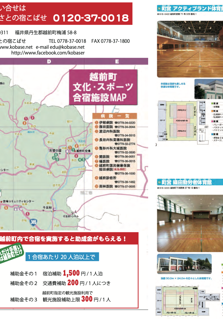 越前町合宿施設パンフレット