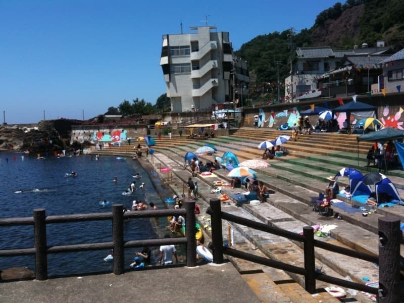 こばせすぐ横の海水浴場です。岩場ですが水が綺麗で、蟹や貝などを見つけたり岩遊びが楽しいです。海水浴の後そのままBBQというのもありかも。
